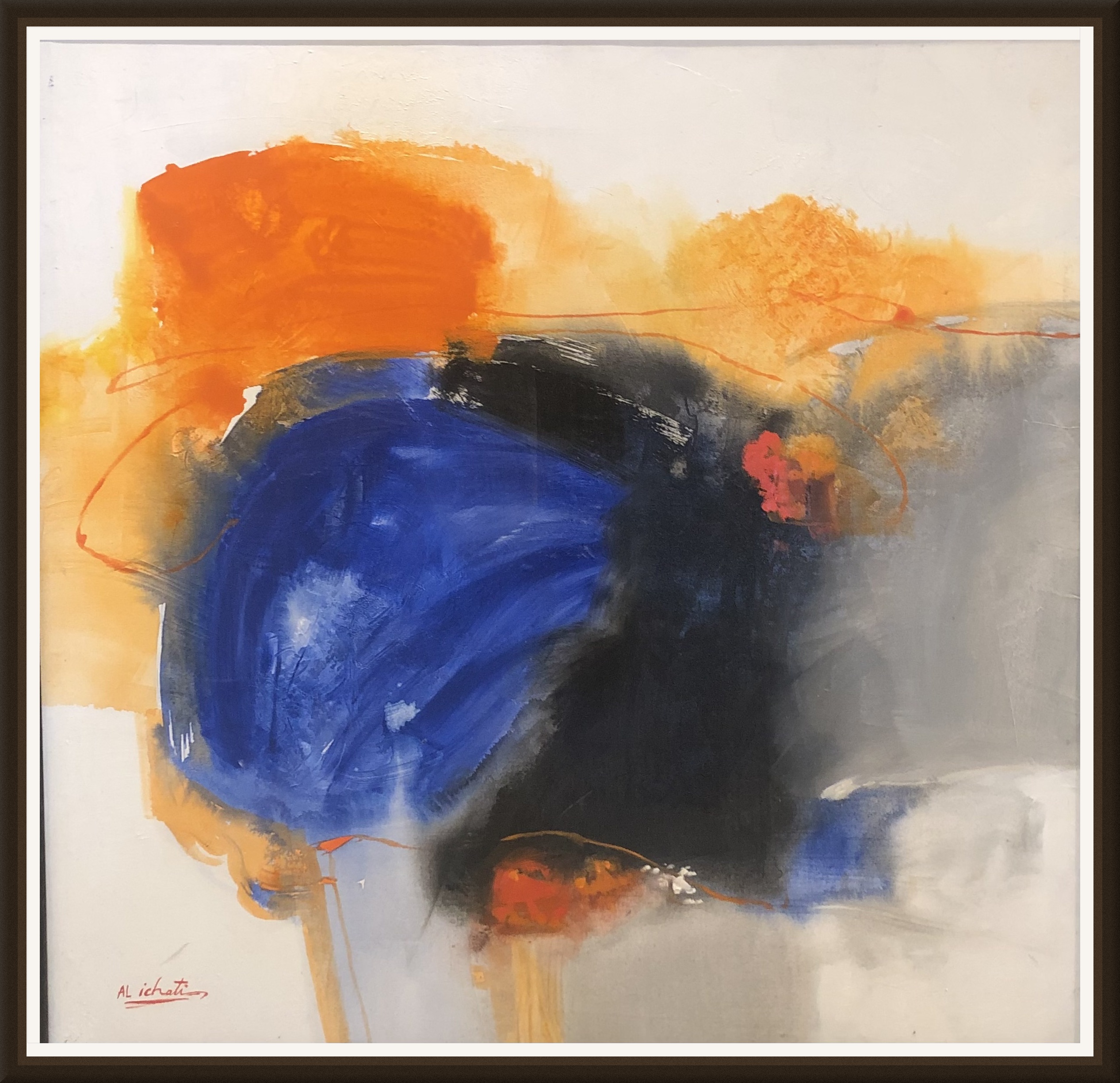 Tableau Abstrait bleu orange contemporain — Mohamed Al Ichati | 100x100cm | Artisthick
