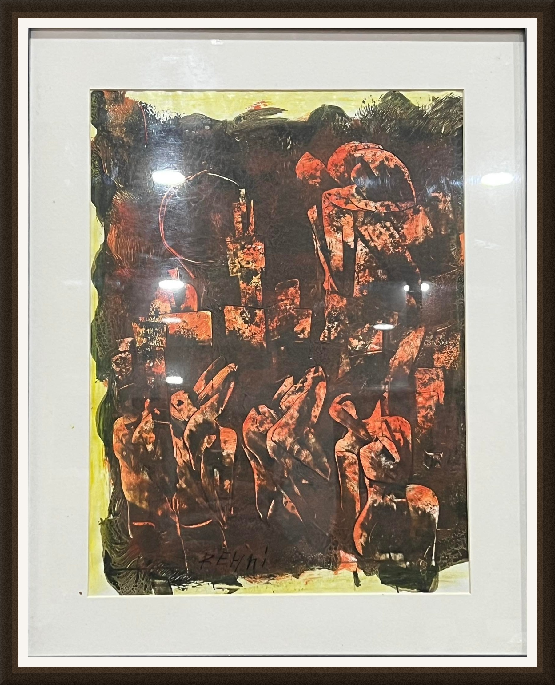 Tableau Abstrait silhouettes orangées — Mohamed Rehmi | 48x38cm | Artisthick
